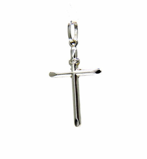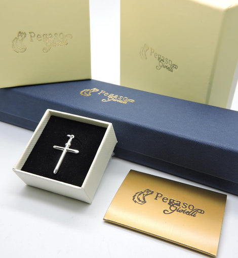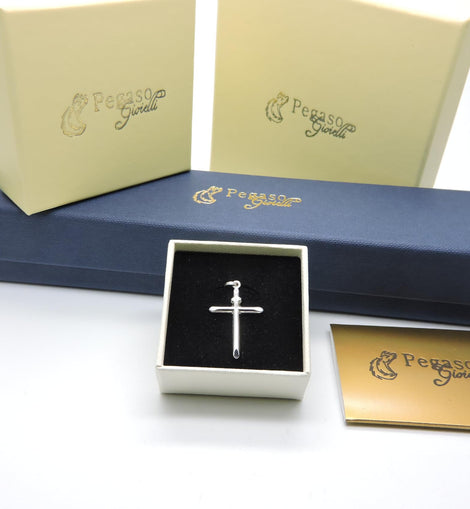 PEGASO GIOIELLI Ciondolo da Bambini in Oro Bianco 18Kt (750) Pendente Croce Religiosa Semplice Crocetta Smussata Lucida