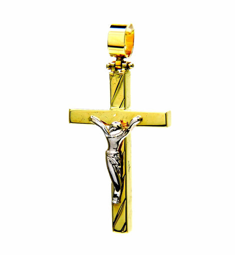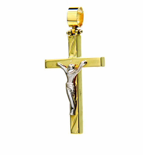 • PEGASO GIOIELLI Ciondolo da Uomo in Oro Giallo Bianco 18kt (750) Pendente Croce Gesù Cristo Crocifisso Classico Lucido