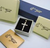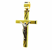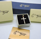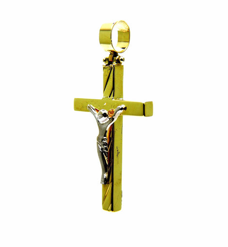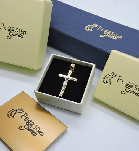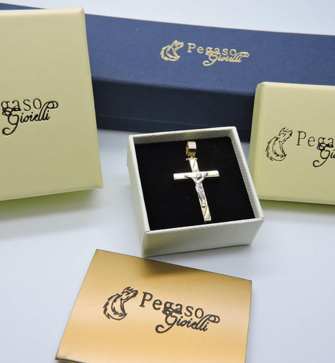 PEGASO GIOIELLI Ciondolo da Uomo in Oro Giallo Bianco 18kt (750) Pendente Croce Gesù Cristo Crocifisso Classico Lucido