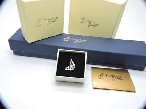 • PEGASO GIOIELLI Ciondolo in Oro Bianco 18kt (750) Pendente Farfalla Farfallina con Zirconi, Donna Ragazza