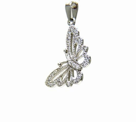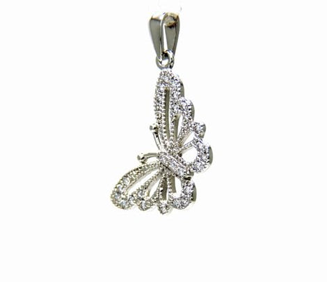 PEGASO GIOIELLI Ciondolo in Oro Bianco 18kt (750) Pendente Farfalla Farfallina con Zirconi, Donna Ragazza