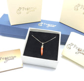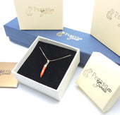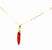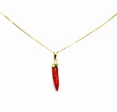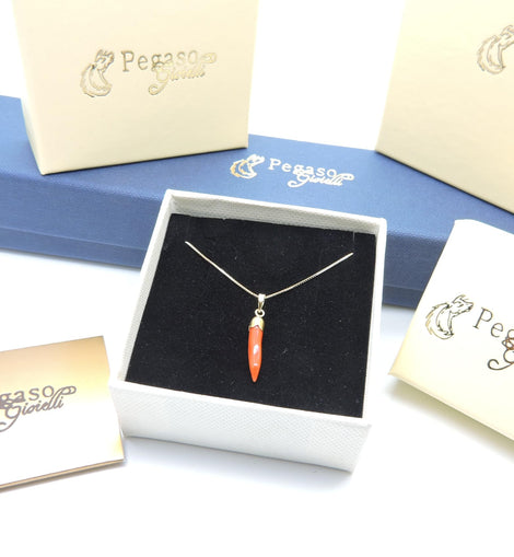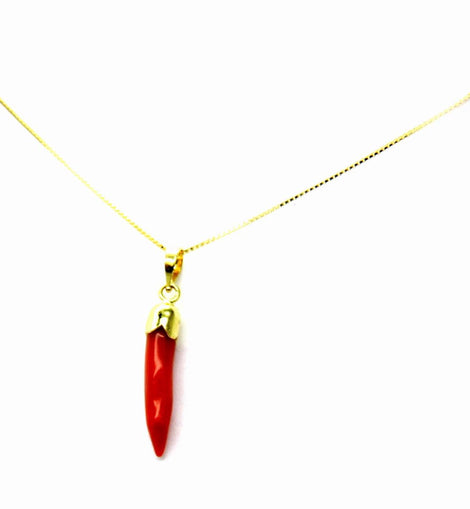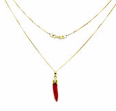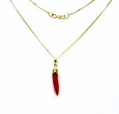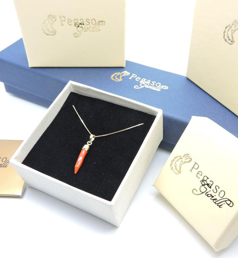 Dettagli: Descrizione Lunghezza catenina cm 40/45. Pendente Portafortuna in corallo rosso: altezza mm 24. Completa di confezione e garanzia.